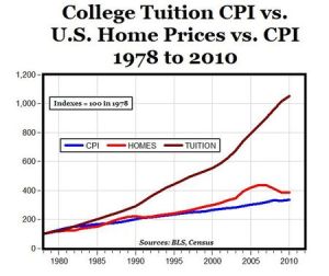 While it’s great that CNBC is bringing to light a serious problem that adds one more ingredient to the bubbling cauldron of crap that is our debt based economy, it is mind-boggling that a business network could fail to understand why we are in this mess to begin with. So why are we in this mess? First, why are college tuitions so high? Second, how did millions of Americans allow themselves to become debt slaves?